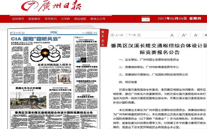 2016年 成為廣東省招標(biāo)投標(biāo)協(xié)會(huì)理事單位,發(fā)起成立“廣東省教育招投標(biāo)協(xié)會(huì)”,并擔(dān)任副會(huì)長(zhǎng)單位,榮獲首批招標(biāo)代理機(jī)構(gòu)信用評(píng)價(jià)AA級(jí)證書。同年6月,成立中山分公司,進(jìn)一步拓展服務(wù)區(qū)域。